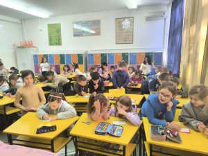Ученица Сара Илић показала је предшколцима како се у школи кроз игру проверава стечено знање. Раме уз раме, другарци и предшколци, решавали су питања на квизу и освајали нова знања.