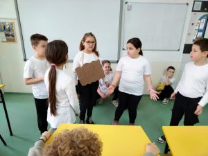 Данас је одржан угледни час учитељице Маје Динић. Вредни и талентовани ученици одељења 2/2 и 2/3, који похађају драмску секцију „Од игре до позорнице“, представили су се у најлепшем светлу, пуни радости, маште и дечје енергије.