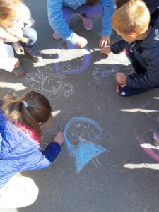 - Дружење са предшколцима из вртића „Хајди“ настављено је и 9. 10. 2019. у осликавању одређеног простора на спортским теренима школе. Поред гостију из вртића, учествовали су и ученици првог, трећег и четрвртог разреда. Према оцени жирија, најуспешнији су били гости – предшколци. Тема цртежа била је „Да право свако – дете ужива лако“. По лепом сунчаном дану деца су уживала у дружењу.